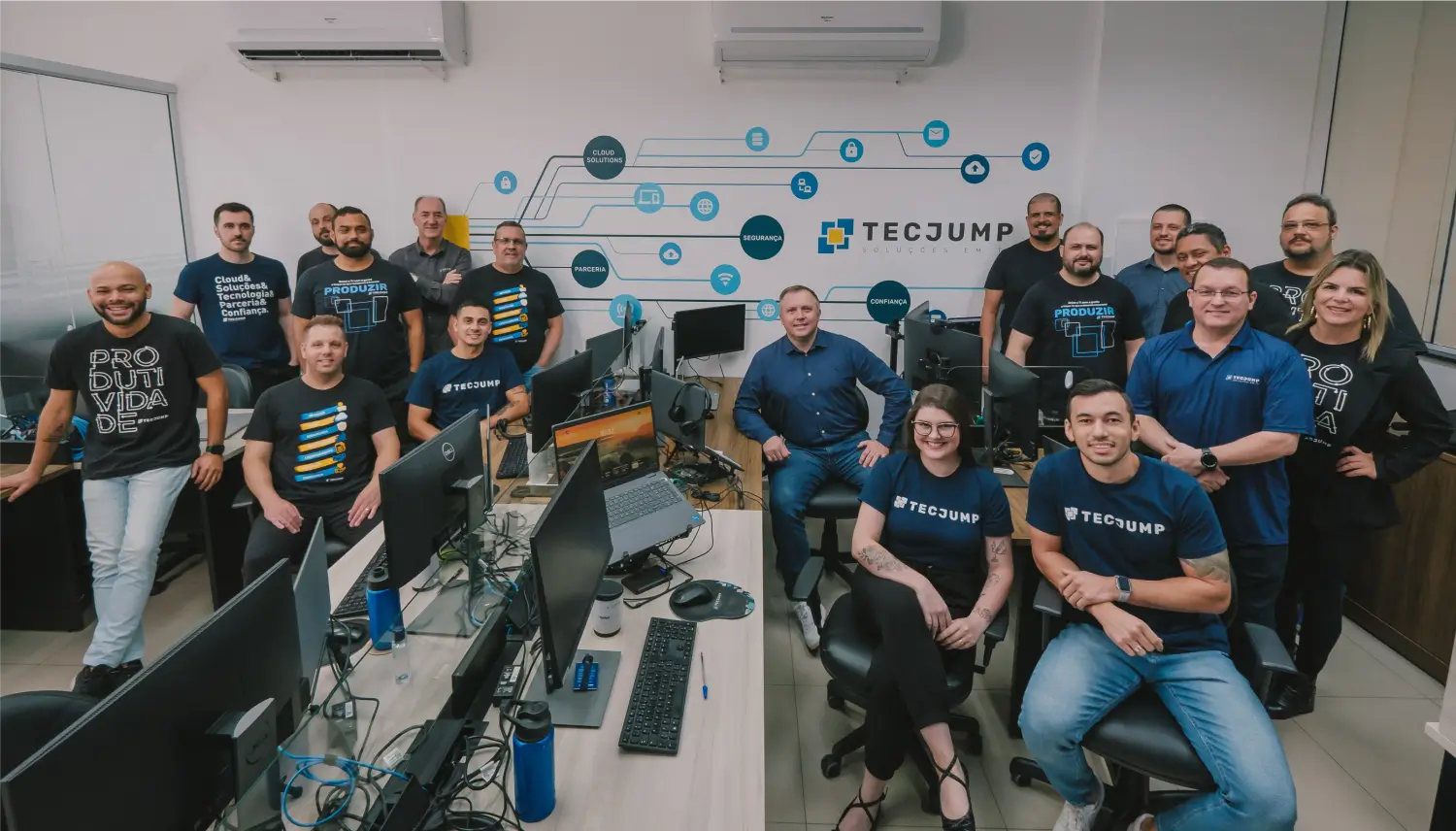 A Tecjump é formada por três sócios com grande experiência técnica e de negócios, mais uma equipe de alto nível e super dedicada.